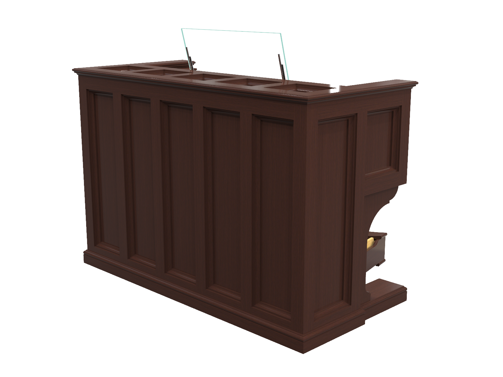 I designed the structure of an ergonomic, low-profile console with over 300 stop-tabs! Initial design, front angle view.